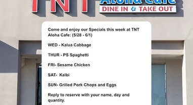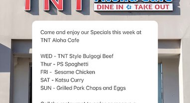 Come and enjoy our Specials this week at TNT Aloha Cafe